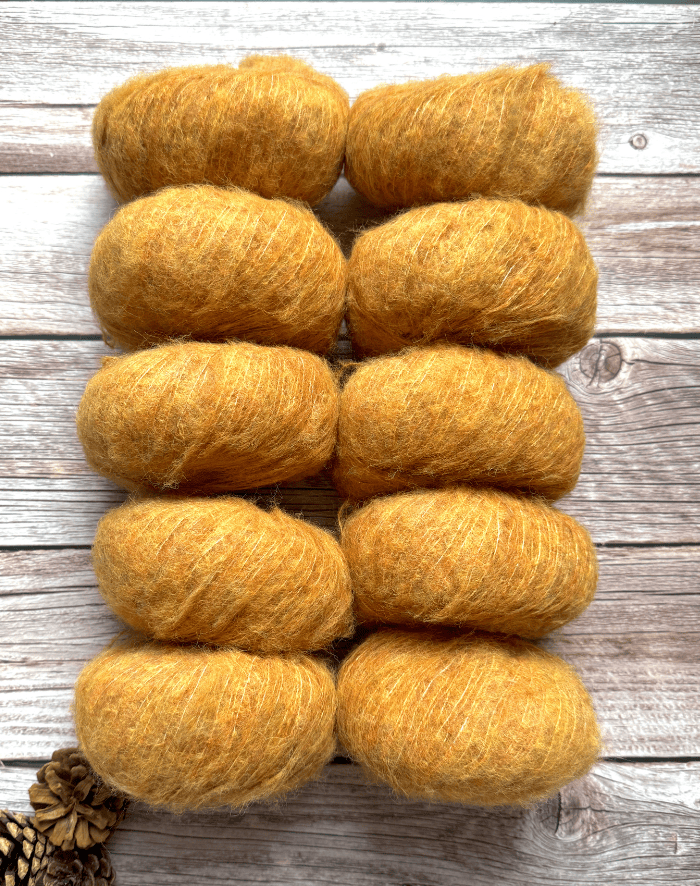 Indhold: 89% Alpaca og 11% polyamid (bindetråden der holder på den børstede alpaca) Vægt: 25 gram Meter pr. ngl: 125 meter Strikkepinde: 3½-4½