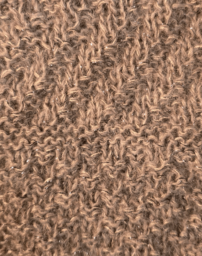 Struktur Halstørklædet bestå af en sammensætning af ret og vrang mønstre, og strikket i Wadils Silk Mohair, Uno Lammeuld og en Glittertråd.
