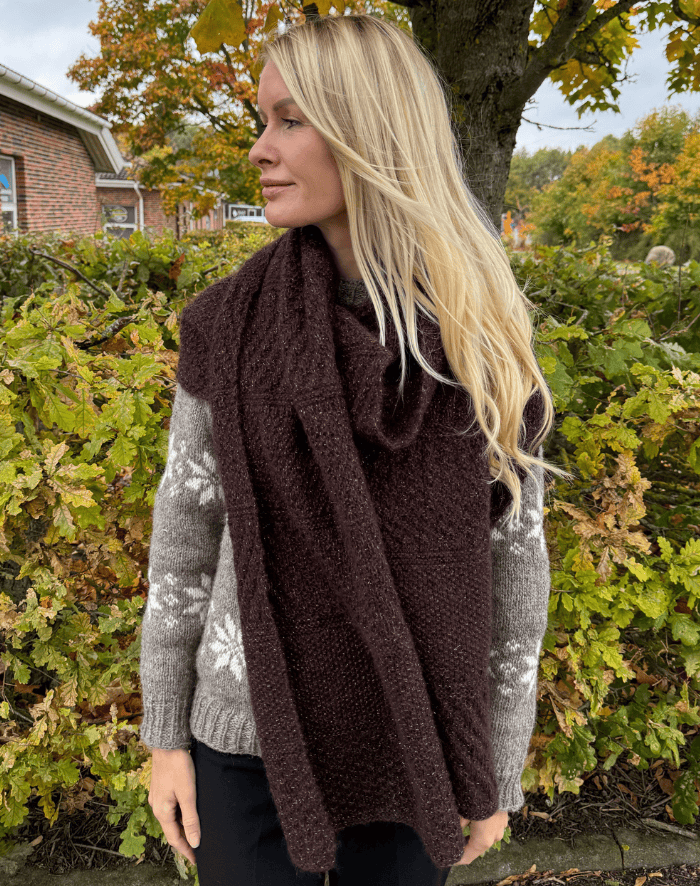 Få en digital opskrift til et luksuriøst Struktur Halstørklæde, strikket i de fineste materialer.